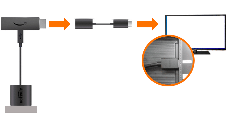 Choose an HDMI port and plug the Firestick into your TV. If you have an HDMI port that is difficult to get to, use the provided HDMI extender.