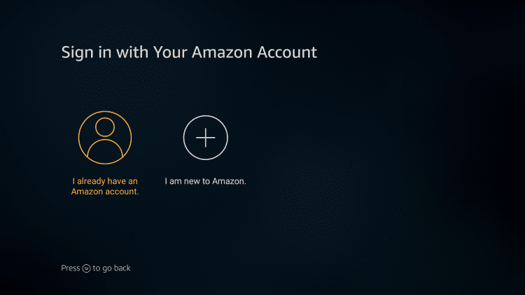 On the other hand, if you have an existing account, click I already have an Amazon account. ( You may be prompted to login from a laptop or other device and input a code on TV, otherwise just follow onscreen instructions)